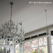 • par filins acier ajustable en longueur de 150 cm de longueur maximum. (129€).